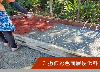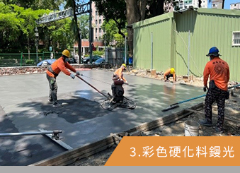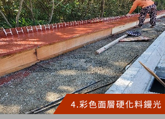 本公司專門經營各式地坪規劃與施工,經營多年獲得多數客戶的迴響,公司以科技、創新、永續、經營為經營理念,不斷努力以現代科技的專業提供客戶最好的服務、創新最優良的產品、永續最棒的品質和鑽研最新的技術。 我們提供全台色彩濃度最鮮豔,強度與耐磨性最高的彩色硬化料與全台最精準的壓花地坪模具,以最好的材料提供給客戶並以豐富的施工經驗與數十年專業的地坪工程技術,提供設計師與業主詳細的施工計劃與專業的施工技術,也提供符合各項材料的試驗報告與客製化材料需求。